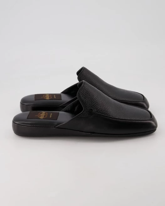Diese Hausschuhe von Aldo Brue für Herren sind genau das, was Sie brauchen. Leder dient als Obermaterial, was dieses Paar ausgesprochen atmungsaktiv und resistent macht. Dieses Material wurde ebenfalls als Innenfutter verwendet. Farblich wurden sie in schickem Schwarz gehalten. Dieses Modell hat keinen Absatz. Kaufen Sie jetzt die Hausschuhe von Aldo Brue und wir liefern sie schnell zu Ihnen nach Hause!